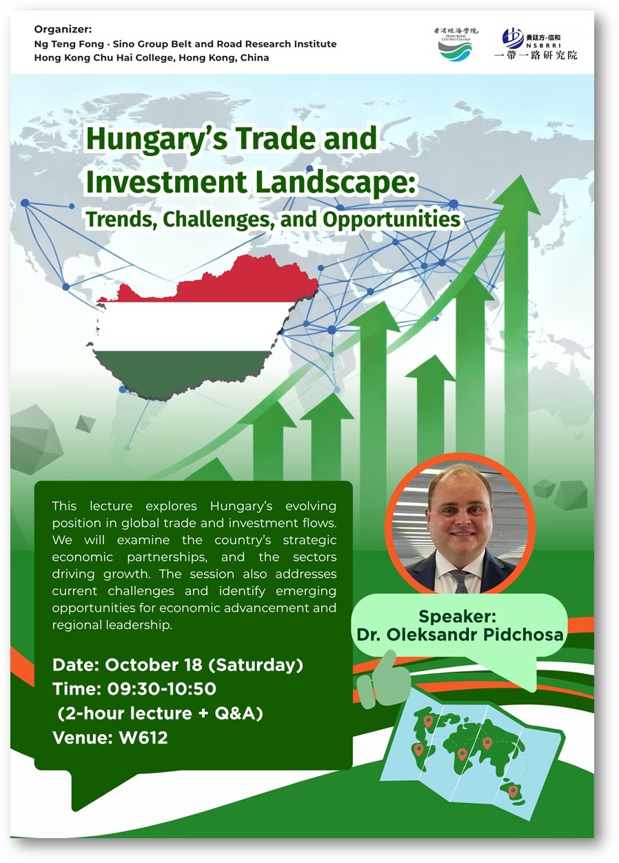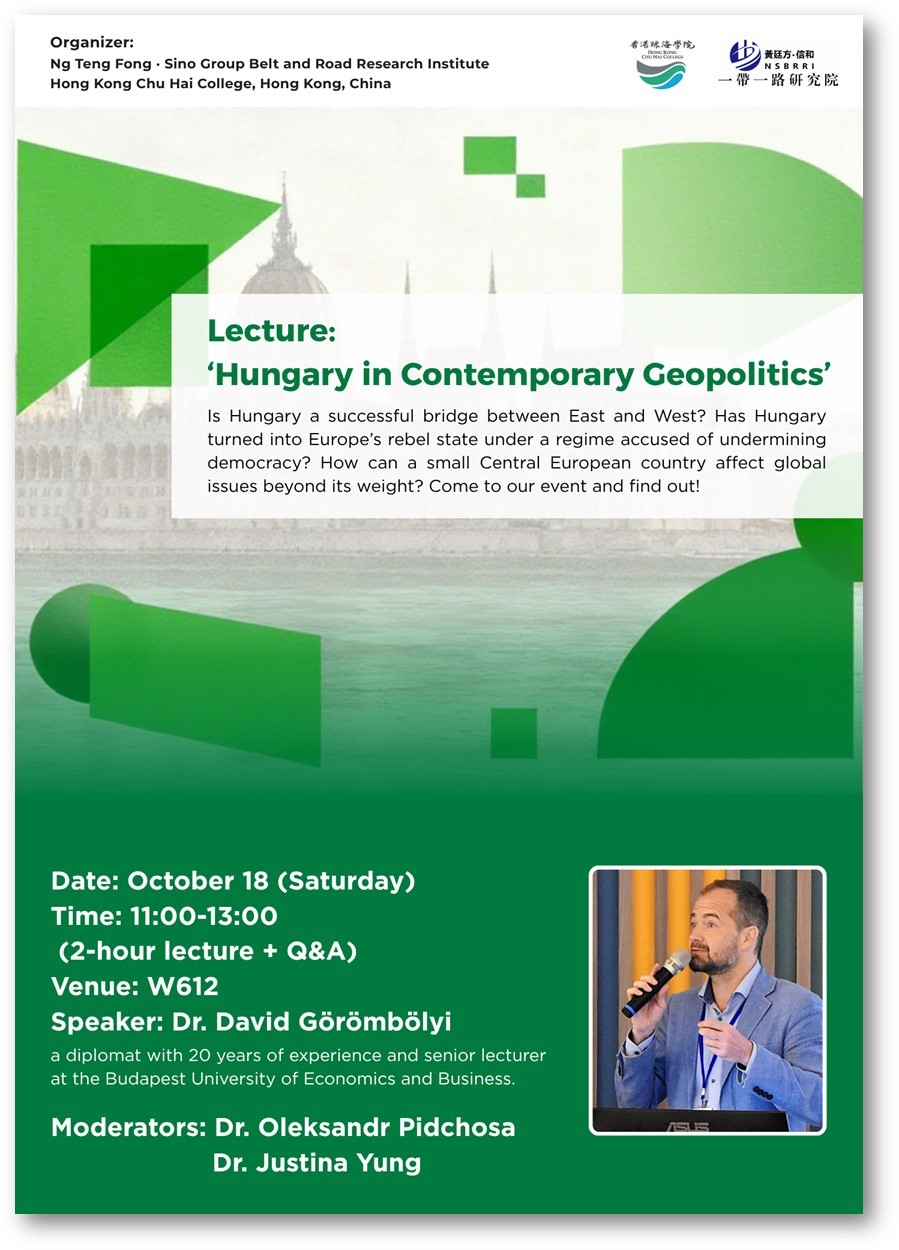 陳文鴻教授誠邀各位同學及教職員出席由黃廷方.信和一帶一路研究院舉辦之 "Hungarian Trade, Geopolitics, and Culture" (匈牙利的貿易、地緣政治與文化) 系列講座。