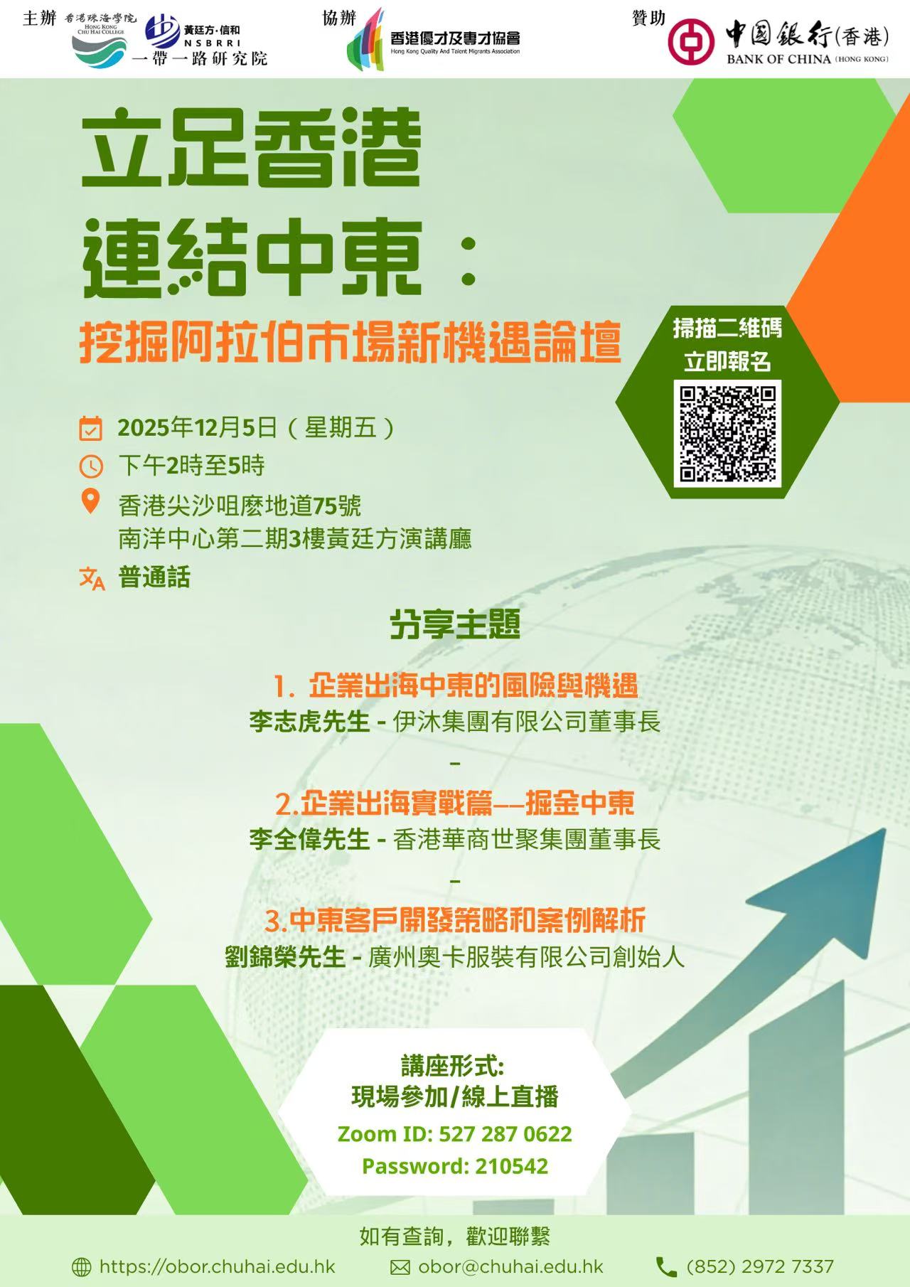 陈文鸿教授诚挚邀请您出席将于2025年12月5日举行的“立足香港,连结中东:挖掘阿拉伯市场新机遇”论坛。