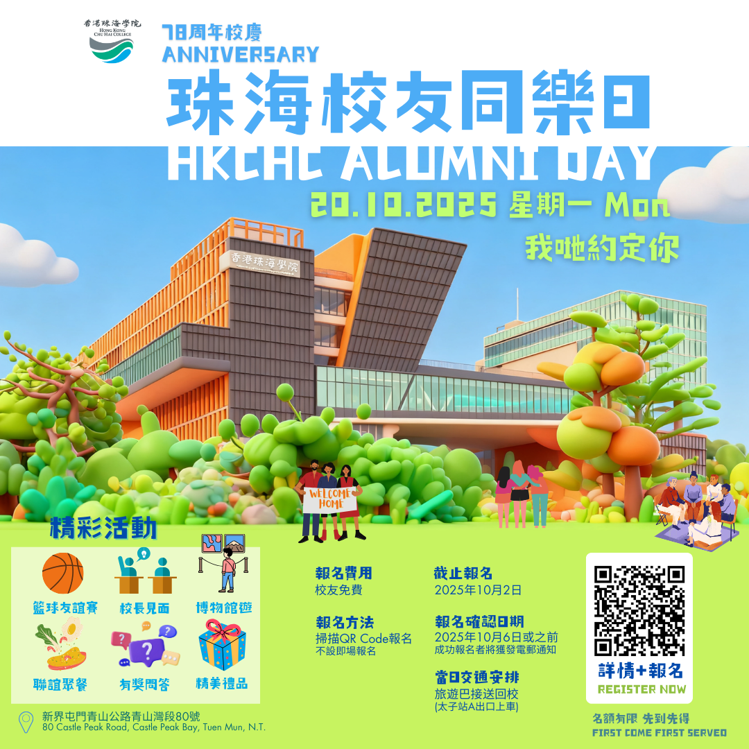 时光飞逝,但情谊不变。香港珠海学院将于2025年10月20日(星期一)举办“78周年校庆校友同乐日”,诚邀各届校友重回校园,共度欢乐时光!