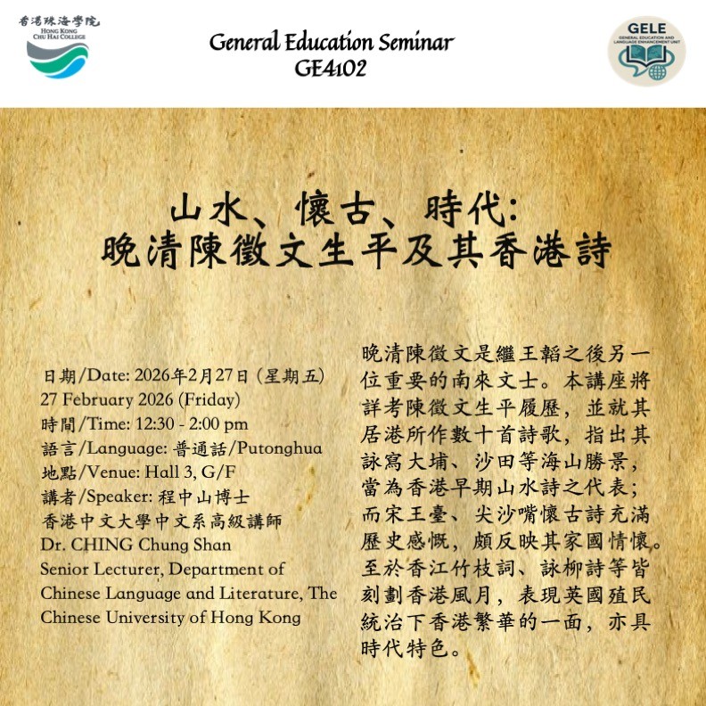 通識講座:山水、懷古、時代:晚清陳徵文生平及其香港詩