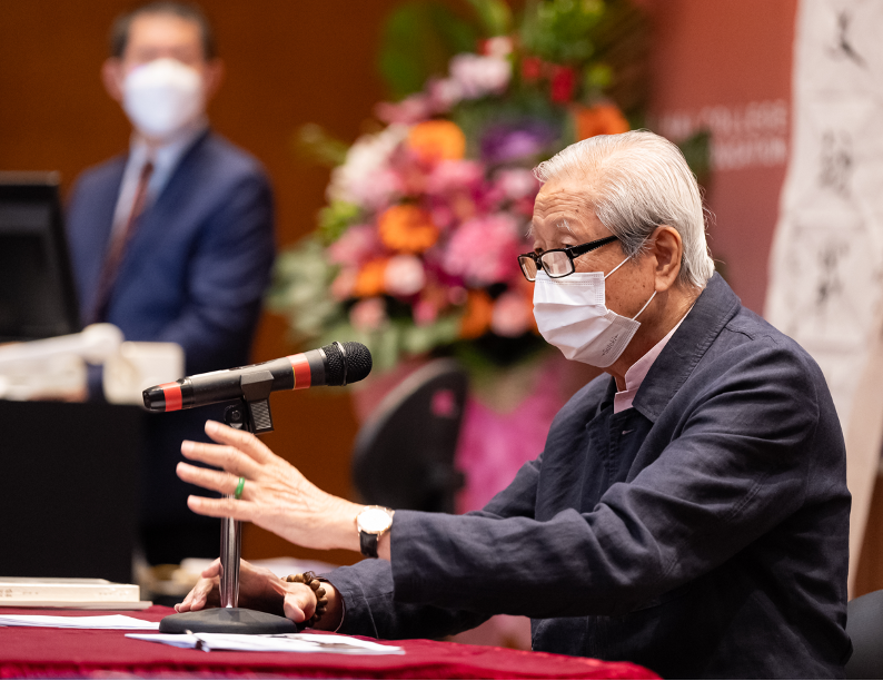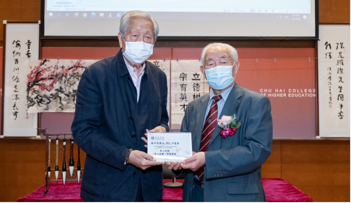 講座結束後,珠海學院校董會主席林廣兆先生與候任校長陳致教授向施子清先生贈送紀念物品及珍藏書籍,並對其支持學院中國傳統文化系列活動表示感謝。
